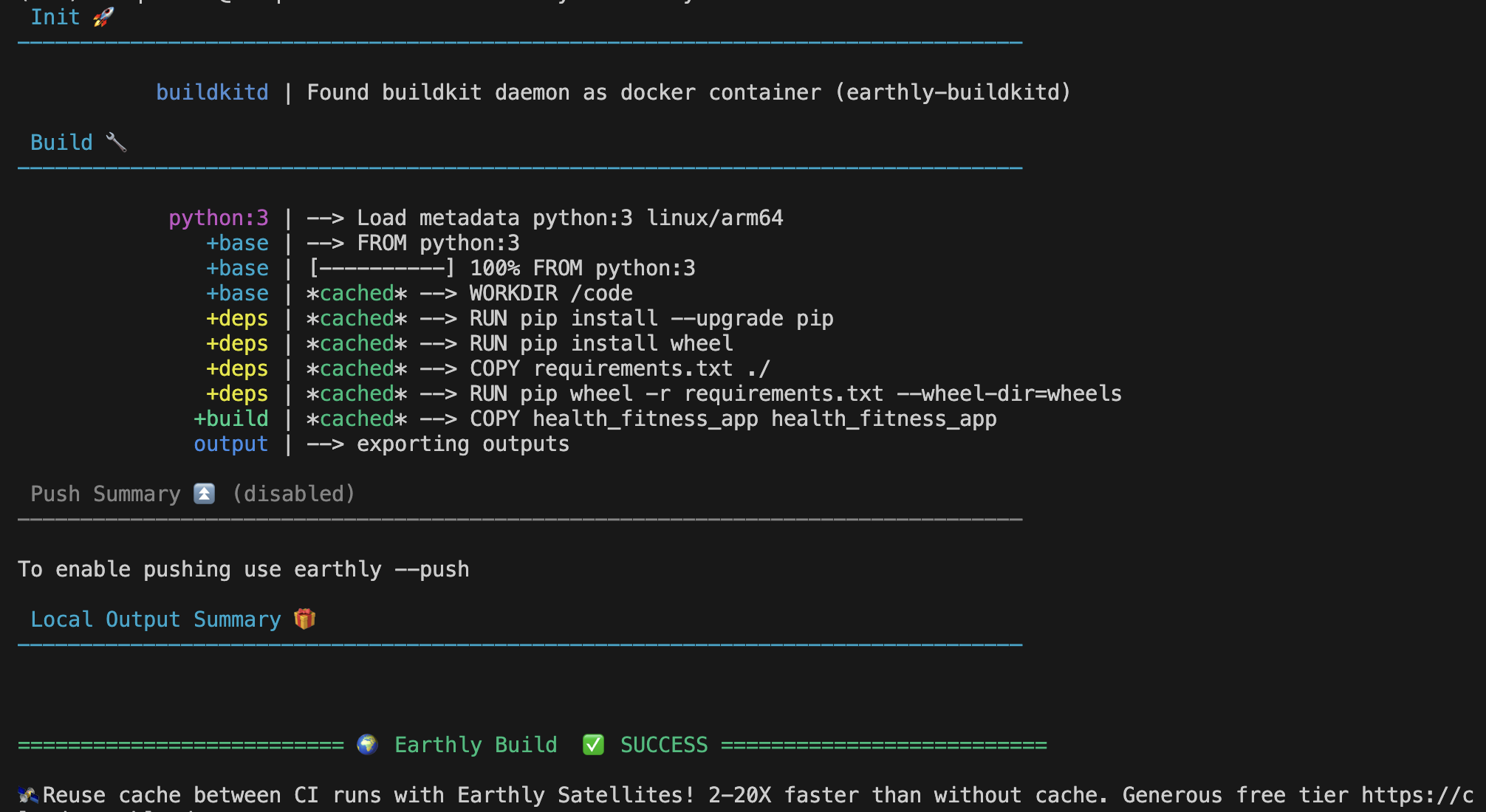The Earthfile for your health and fitness app looks like this: