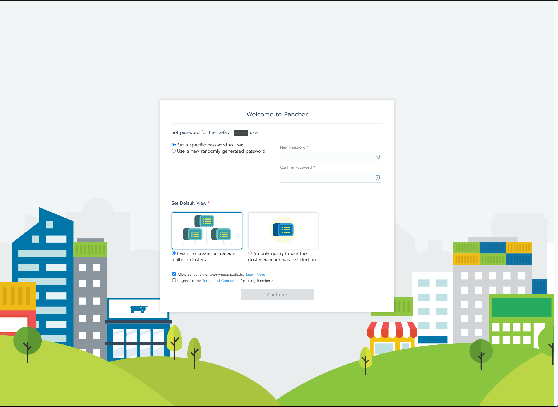 Regardless of the method selected, once you’ve installed Rancher, you’ll see the login screen: