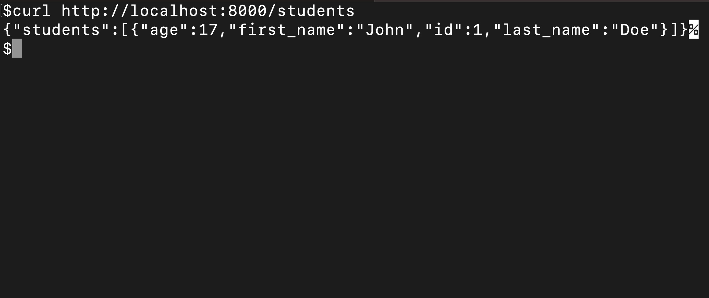 curl http://localhost:8000/studentsHere’s the from running the CURL GET request: