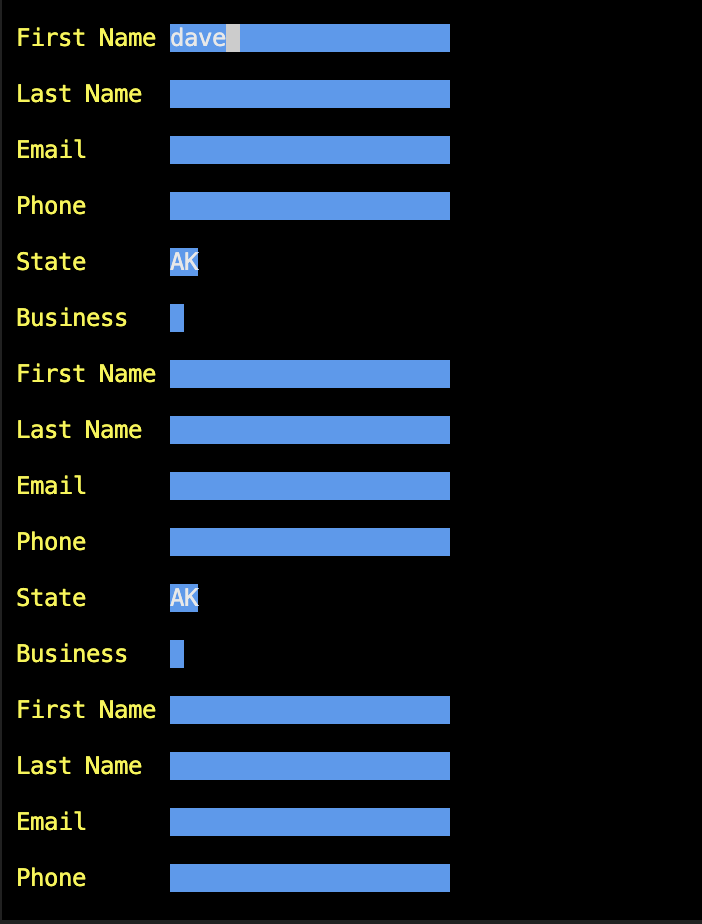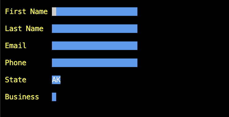 Now that we can respond to input, let’s give the user the ability to create a new contact by providing them with a form to fill out. Tview makes creating a form super simple.