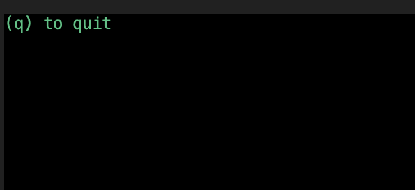Run this code and marvel at the blank black nothing that fills your terminal screen. You can end the program by pressing ctrl+c. Not super exciting, but it’s a start. We’ve created an app, but we haven’t told it to display anything or to respond to any key presses.