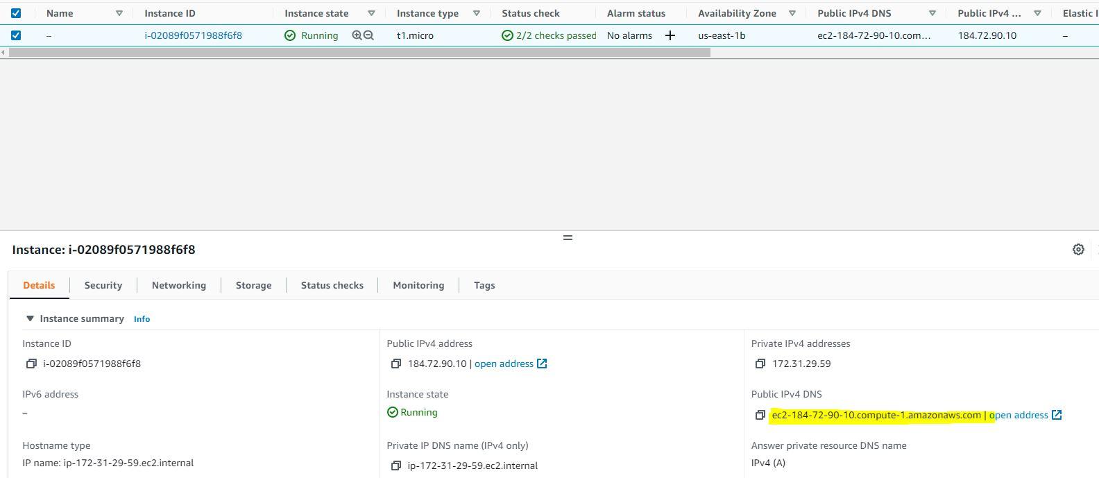 ssh -i "hello.pem" ec2-user@ec2-184-72-90-10.compute-1.amazonaws.comIn the previous command, you will need to change ec2-user@ec2-184-72-90-10.compute-1.amazonaws.com to your EC2 Public DNS instance, found by going to the instance Details, then locate the Public IPv4 DNS, as shown subsequently: